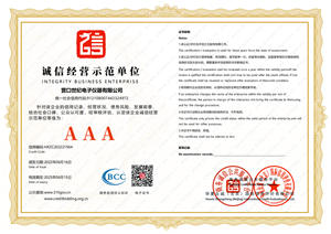 AAA級(jí)誠信經(jīng)營示范單位